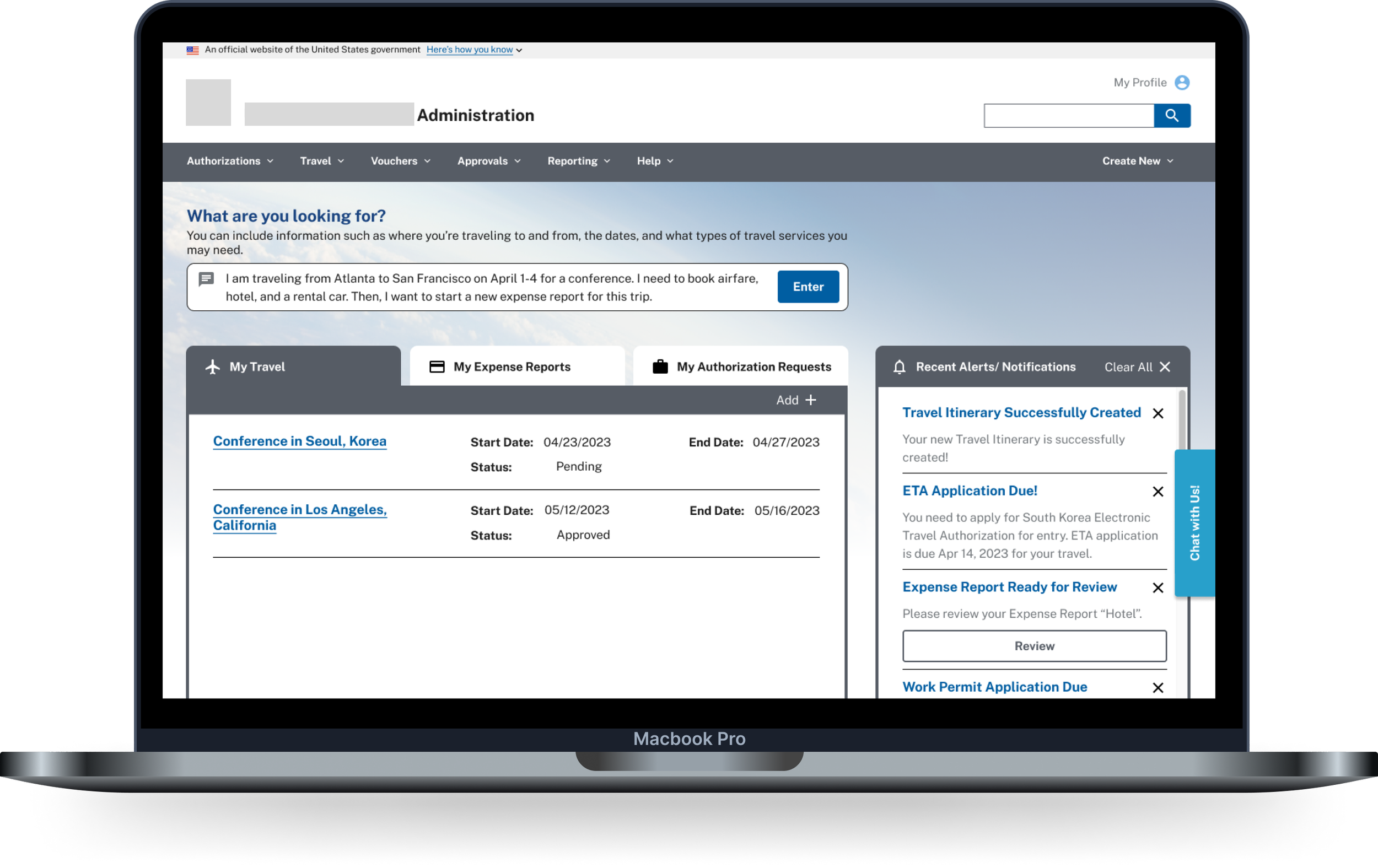 Envisioning a new travel booking platform for a federal government agency aiming to enhance the experience through data insights.